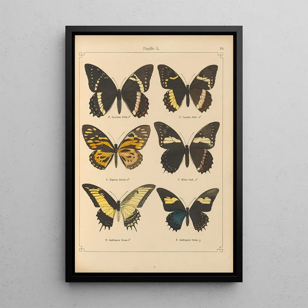 La impresión artística de Papillons exotiques Pl010 nos sumerge en un universo fascinante donde la naturaleza se expresa a través de colores vibrantes y formas delicadas. Otto Staudinger, con su talento incomparable, logra inmortalizar estos insectos con alas brillantes, creando una atmósfera de ligereza y gracia. Cada mariposa, minuciosamente detallada, parece estar a punto de volar, aportando una sensación de movimiento a la composición. Los matices vibrantes, que van desde azules profundos hasta amarillos luminosos, se combinan armoniosamente, revelando la belleza y la diversidad del mundo natural.