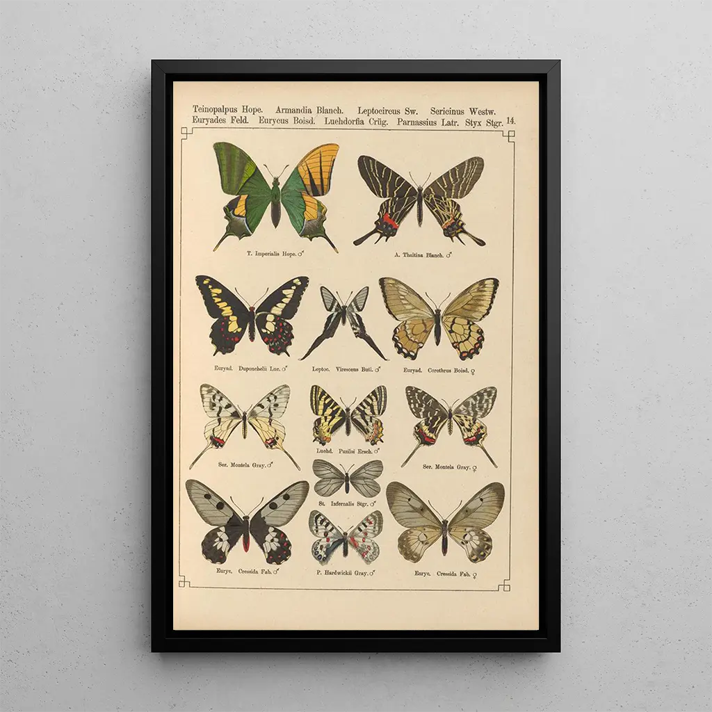 La impresión artística de Papillons exotiques Pl014 nos transporta a un universo donde la naturaleza se expresa con brillo. Los motivos delicados y los colores vibrantes de las mariposas se despliegan con gracia sobre el lienzo, creando una escena viva y dinámica. Cada detalle, minuciosamente reproducido, testimonia la experiencia de Otto Staudinger. La luz juega sobre las alas translúcidas, acentuando su belleza frágil y efímera. Esta obra invita a una contemplación atenta, revelando la magia de la naturaleza a través del prisma del arte. Es una celebración de la diversidad y del esplendor de las especies que habitan nuestro planeta.