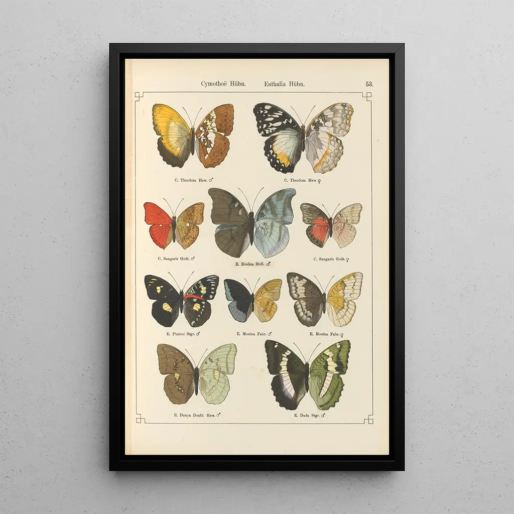 La impresión artística de l'œuvre "Papillons exotiques Pl053" d'Otto Staudinger nous transporte dans un monde enchanteur où chaque papillon est une œuvre d'art à part entière. Les teintes vibrantes et les motifs délicats s'entrelacent pour créer une composition visuellement captivante. La lumière semble jouer sur les ailes, accentuant les détails minutieux et la texture des insectes. Cette toile évoque une atmosphère de sérénité et de fascination, invitant le spectateur à explorer la beauté de la nature sous un angle nouveau et poétique.