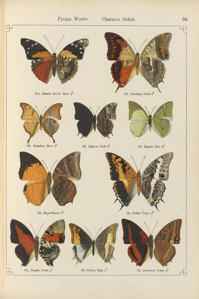 Otto Staudinger, ilustrador y entomólogo del siglo XIX, supo fusionar su pasión por la naturaleza con su talento artístico. Sus obras, en particular sus ilustraciones de mariposas, reflejan una época en la que la observación científica y el arte se cruzaban. Staudinger fue influenciado por los avances de la biología y dedicó su carrera a representar la belleza y la diversidad del mundo natural. Sus « Papillons exotiques Pl058 » ilustran perfectamente su enfoque, combinando precisión científica y sensibilidad artística, convirtiéndolo en un pionero en el campo de la ilustración naturalista.