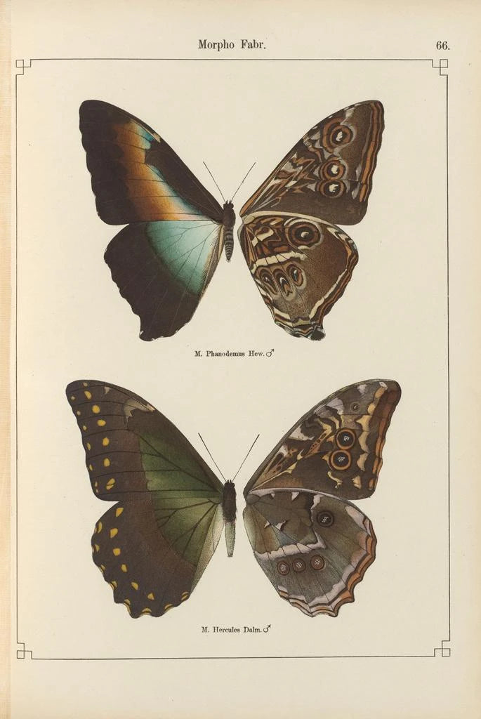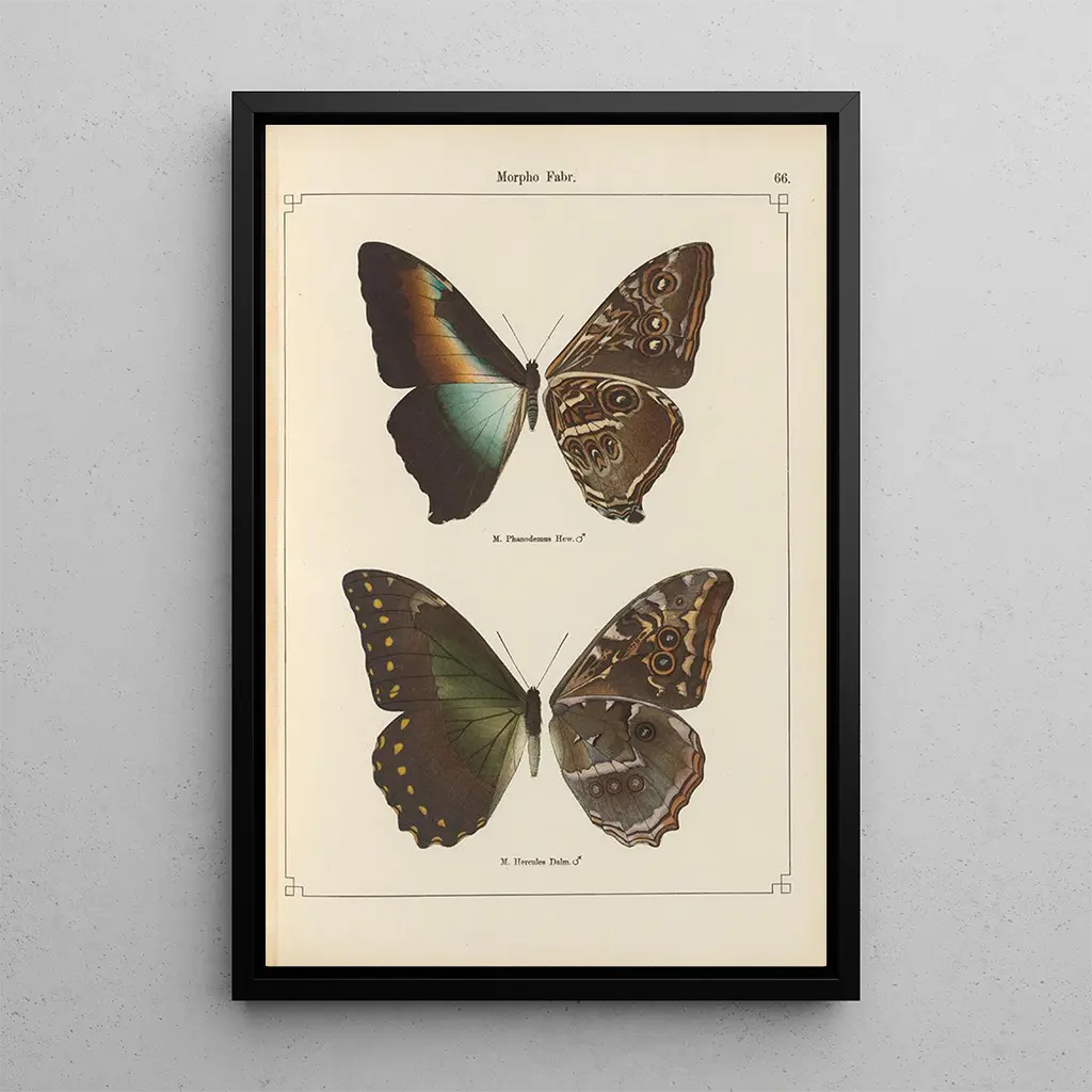 Las "impresiones artísticas Papillons exotiques Pl066" de Otto Staudinger ofrecen una visión fascinante de la biodiversidad a través de una paleta de colores vibrantes y formas delicadas. Cada mariposa está representada con una precisión minuciosa, destacando la belleza de los detalles naturales. Los matices vibrantes de azul, verde y naranja crean una atmósfera viva y dinámica, casi mágica. La técnica de Staudinger, que combina realismo y poesía, permite sentir la ligereza de estas criaturas efímeras, invitando al espectador a maravillarse ante la espléndida naturaleza.