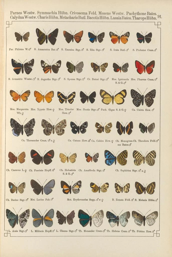 Otto Staudinger, figura emblemática del arte naturalista del siglo XIX, supo capturar la esencia de la biodiversidad a través de sus obras. Su interés por las ciencias naturales y su talento artístico le permitieron crear ilustraciones de una precisión notable. Las "Papillons exotiques Pl091" ilustran perfectamente su estilo, combinando rigor científico y sensibilidad estética. Staudinger contribuyó a sensibilizar al público sobre la belleza de las especies amenazadas, haciendo de su trabajo un testimonio valioso de su época y un llamado a la preservación de la naturaleza.