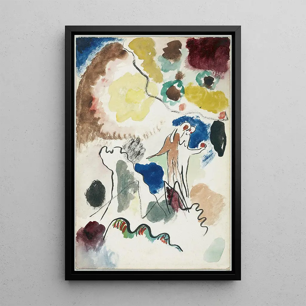 En "Paradis", Wassily Kandinsky nos sumerge en un mundo donde los colores y las formas se entrelazan para crear una atmósfera mística y cautivadora. Esta obra, realizada en 1910, se distingue por sus tonos vibrantes y sus composiciones dinámicas que parecen bailar sobre el lienzo. Las formas abstractas evocan emociones profundas, invitando al espectador a una contemplación introspectiva. La técnica de la óleo sobre lienzo permite a Kandinsky explorar los límites de la abstracción, transmitiendo una sensación de libertad y elevación espiritual, como si cada golpe de pincel fuera una nota en una sinfonía visual.