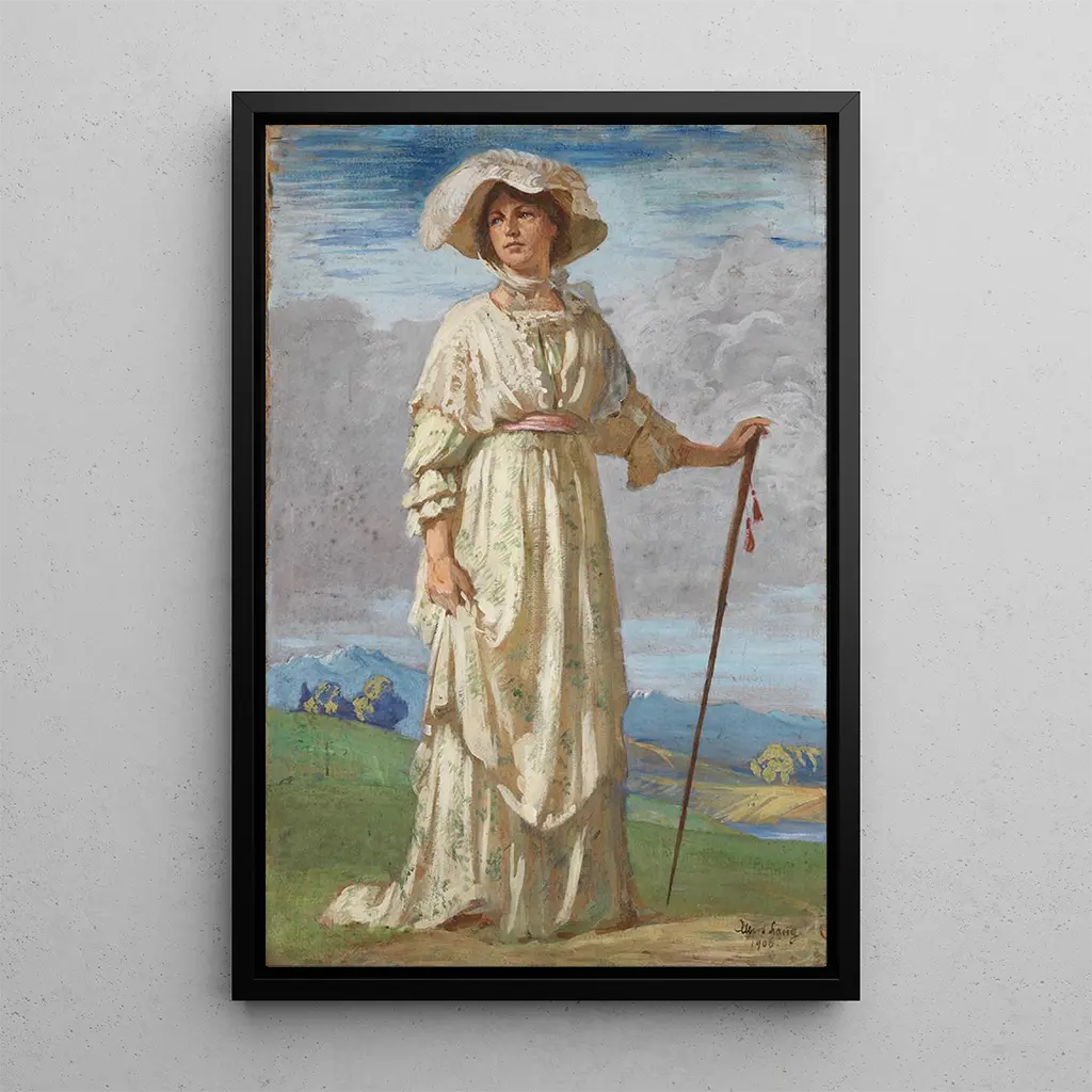 En promenade : una evasión poética en la naturaleza La obra "En promenade" de Albert Lang nos transporta a un universo de serenidad y belleza natural. La composición destaca un paisaje verde, donde las tonalidades de verde se mezclan con toques de colores vivos, evocando la frescura de un día soleado. La técnica de Lang, que combina pinceladas delicadas y golpes de color audaces, crea una atmósfera viva y dinámica. Los detalles minuciosos de las hojas y las flores nos invitan a sentir la suavidad de la brisa y el canto de los pájaros, haciendo de este lienzo una verdadera oda a la naturaleza. Albert Lang : un maestro del paisaje en la transición del siglo XX Albert Lang, activo a finales del siglo XIX y principios del XX, es reconocido por su enfoque único del paisaje. Influenciado por el movimiento impresionista, se esfuerza por capturar la luz y el instante presente en sus obras. Lang supo impregnar sus técnicas de sus predecesores, desarrollando un estilo personal, caracterizado por colores vibrantes y composiciones armoniosas. Su trabajo refleja una época en la que el arte se libera de las convenciones académicas, ofreciendo una nueva visión de la naturaleza y la vida cotidiana. Una adquisición decorativa con múltiples ventajas La impresión artística "En promenade" es una pieza decorativa ideal para aportar un toque de naturaleza a su interior. Ya sea en una sala de estar, una oficina o un dormitorio, este cuadro sabrá alegrar su espacio con su encanto relajante. La calidad de la impresión artística garantiza fidelidad en los detalles y los colores de la obra original, permitiendo disfrutar de su atractivo estético a diario. Al elegir esta tela, opta por una decoración que inspira tranquilidad y contemplación, además de añadir un toque artístico a su entorno.