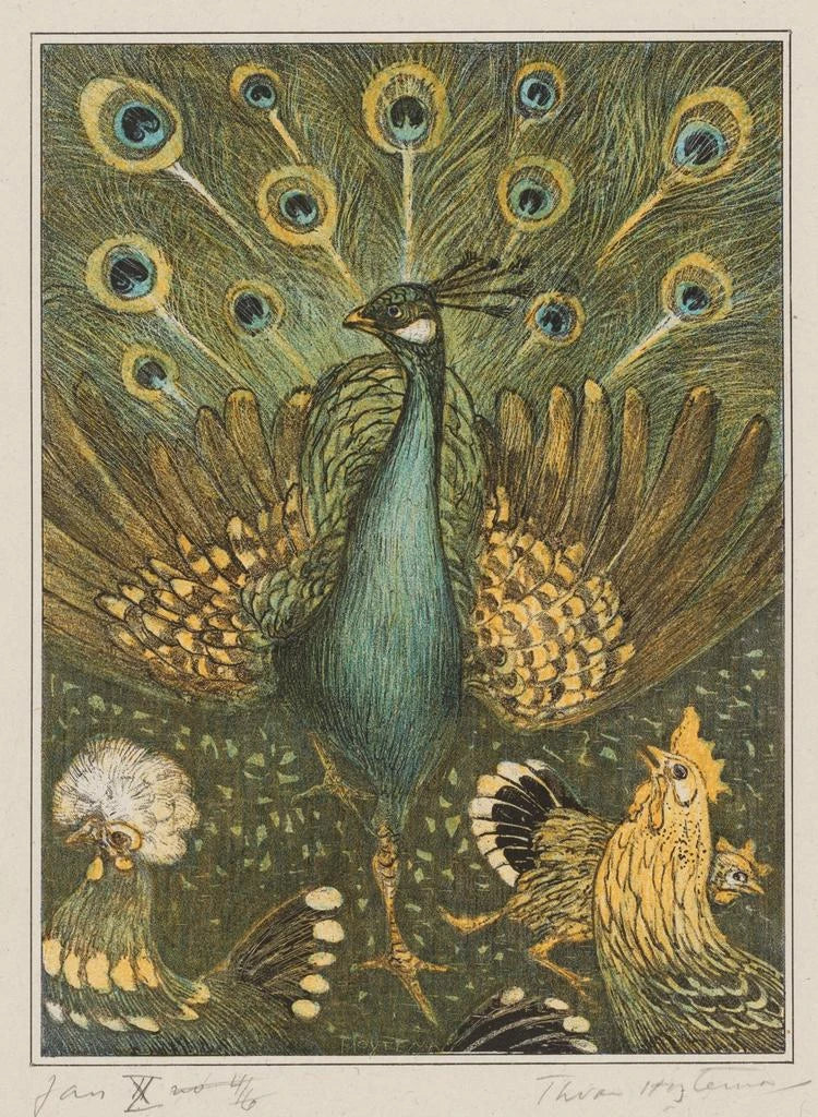 Cuadro Pavo real con gallinas - Theo van Hoytema | Impresión artística