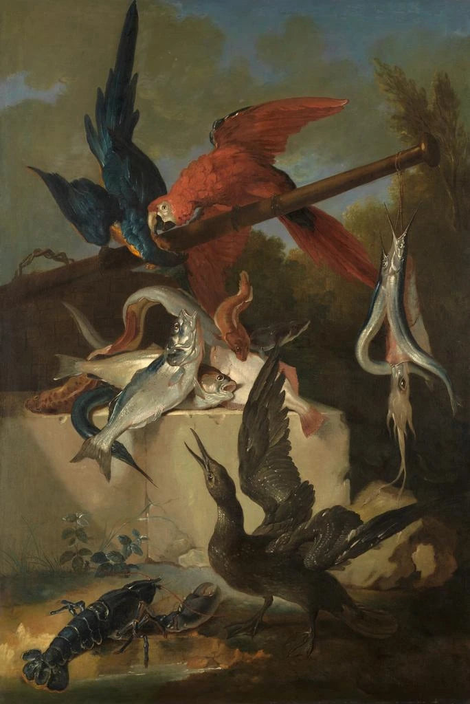Cuadro de peces, aves marinas y loros - Jean-Baptiste Oudry | Impresión artística