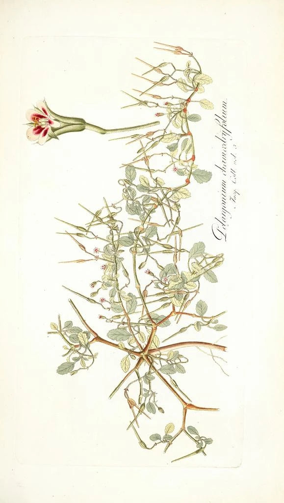 Nikolaus Joseph Freiherr von Jacquin, botánico e ilustrador del siglo XVIII, es reconocido por sus contribuciones a la botánica y al arte. Influenciado por los descubrimientos de su época, viajó a regiones exóticas, recopilando especímenes y ilustrándolos con precisión. Sus obras, como esta impresión artística del Pelargonium chamaedryfolium, reflejan su habilidad para combinar rigor científico y sensibilidad artística. Como miembro de la Academia de Ciencias, Jacquin dejó un legado duradero, inspirando a generaciones de botánicos y artistas en todo el mundo.