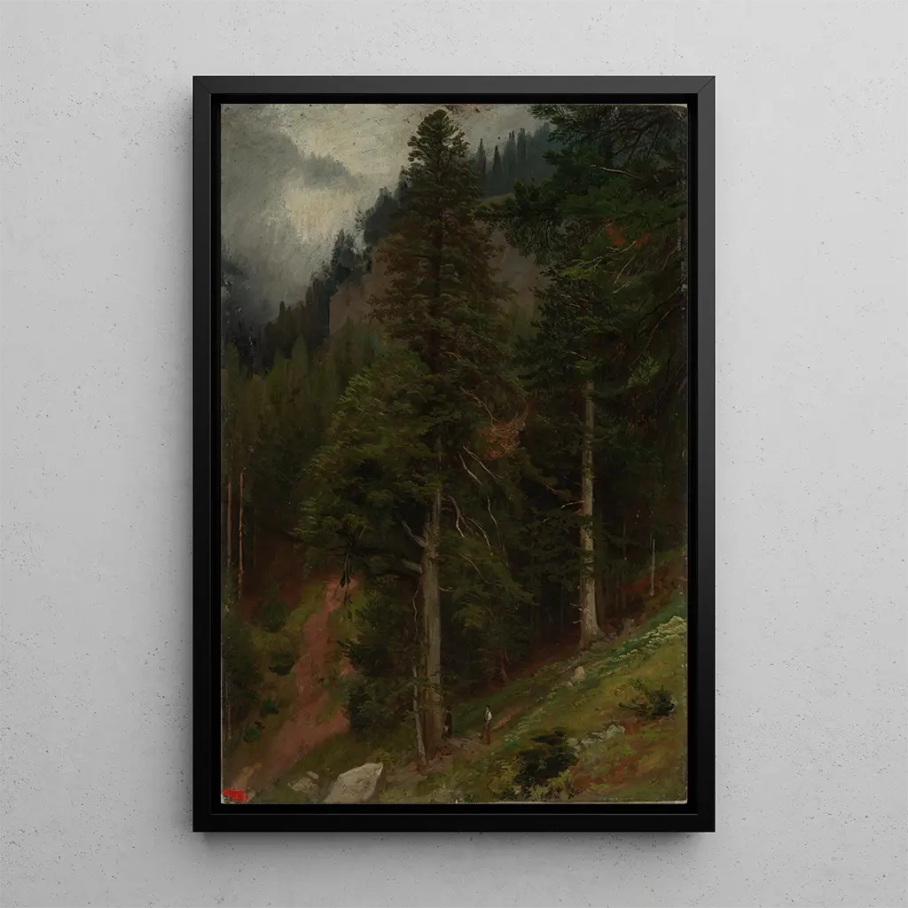 "Pente dans la forêt de sapins" de Johann Wilhelm Schirmer nos transporta al corazón de una naturaleza salvaje y majestuosa. Esta obra de impresión artística representa una pendiente verde, bordeada de majestuosos pinos, donde la luz se filtra a través del follaje, creando juegos de sombra y luz. Las tonalidades de verde, marrón y azul se mezclan armoniosamente, evocando una atmósfera tranquila y serena. La técnica de Schirmer, marcada por un realismo impresionante, permite sentir la frescura del aire y el susurro de las hojas, haciendo de esta obra una verdadera oda a la belleza natural.