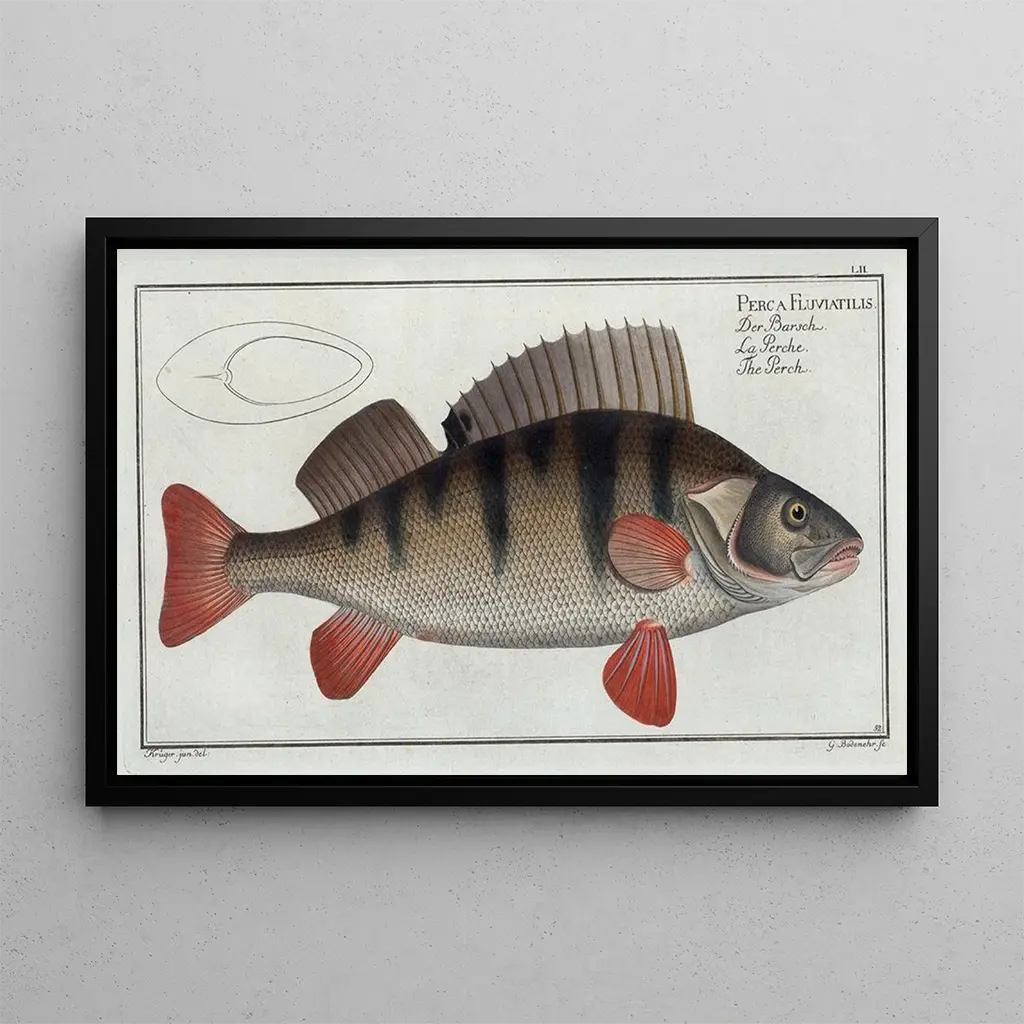 Marcus Elieser Bloch, un naturaliste et illustrateur du XVIIIe siècle, est reconnu pour ses contributions significatives à l'étude des poissons. Son œuvre s'inscrit dans le mouvement de la science naturelle, où l'observation et la représentation précise des espèces étaient essentielles. Bloch a voyagé à travers l'Europe, s'inspirant des différentes cultures et techniques artistiques, ce qui a enrichi son style unique. Ses illustrations, dont la reproduction de La Perche, sont non seulement des œuvres d'art, mais aussi des documents scientifiques qui ont aidé à cataloguer la biodiversité aquatique de son époque. Son héritage perdure, influençant les générations d'artistes et de scientifiques.