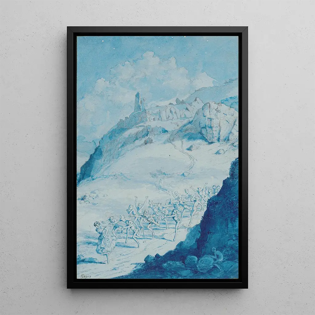 La tela "Poursuivi por duendes" de Richard Doyle nos sumerge en un mundo encantado donde lo real y lo fantástico se encuentran. Con colores pastel delicados y una composición dinámica, Doyle crea una escena vibrante donde los duendes, traviesos y graciosos, parecen bailar alrededor de un joven. La técnica del artista, que combina acuarela y dibujo, da vida a detalles minuciosos, haciendo que cada personaje y elemento de la naturaleza sea casi tangible. Esta obra evoca una atmósfera de magia y misterio, invitando al espectador a escapar a un universo mágico.