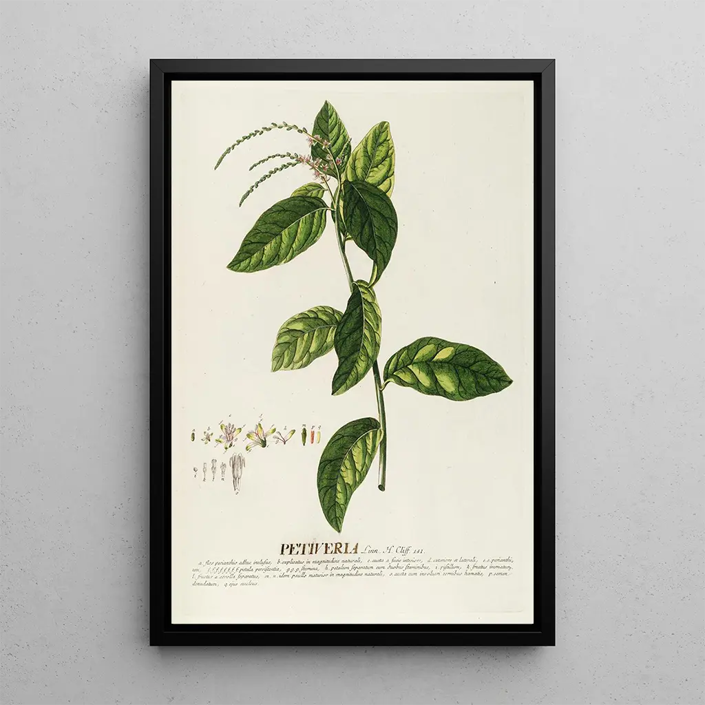 La impresión artística de Petiveria es una pieza decorativa ideal para enriquecer su interior, ya sea en una sala de estar, una oficina o un dormitorio. Su calidad de impresión y fidelidad a los detalles originales la convierten en una opción atractiva para los amantes del arte y la botánica. Este lienzo, con sus colores vibrantes y su estética refinada, aporta un toque de naturaleza a su decoración, creando un ambiente relajante e inspirador. Al elegir esta obra, opta por un cuadro que no solo adorna una pared, sino que invita a la contemplación y a la evasión.