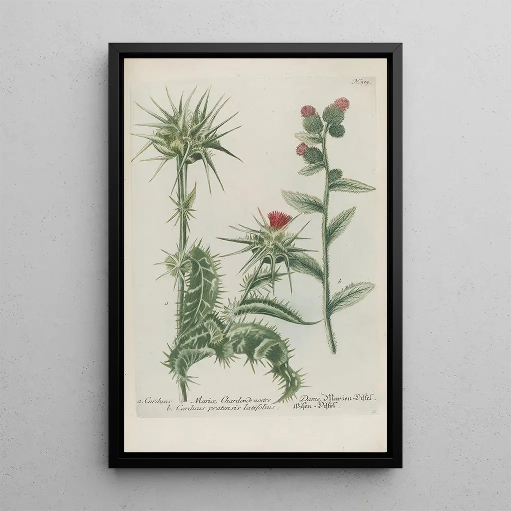 La impresión artística de Phytanthoza iconographia Pl036 transporta al espectador a un universo botánico fascinante. Esta obra, rica en detalles, presenta una multitud de plantas con formas variadas y colores vibrantes. Las tonalidades de azul, amarillo y verde se entrelazan armoniosamente, creando una composición a la vez dinámica y relajante. La técnica de grabado de Johann Wilhelm Weinmann permite reproducir cada textura y sombra con una precisión asombrosa, ofreciendo así una experiencia visual inmersiva. Este lienzo invita a la contemplación, revelando la belleza y la complejidad del mundo vegetal.