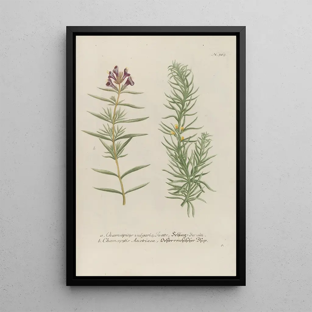 La impresión artística de Phytanthoza iconographia Pl088 ofrece una inmersión fascinante en el universo vegetal, donde cada detalle está cuidadosamente elaborado. Los colores vibrantes, que van desde verdes intensos hasta matices delicados de rosa y amarillo, crean una atmósfera viva y dinámica. La técnica de grabado utilizada por Johann Wilhelm Weinmann permite capturar la belleza de las plantas con una precisión notable, rindiendo homenaje a la diversidad de la naturaleza. Esta obra invita a la contemplación y a la admiración ante la riqueza del mundo vegetal, mientras se inscribe en una tradición artística que valora la observación científica.