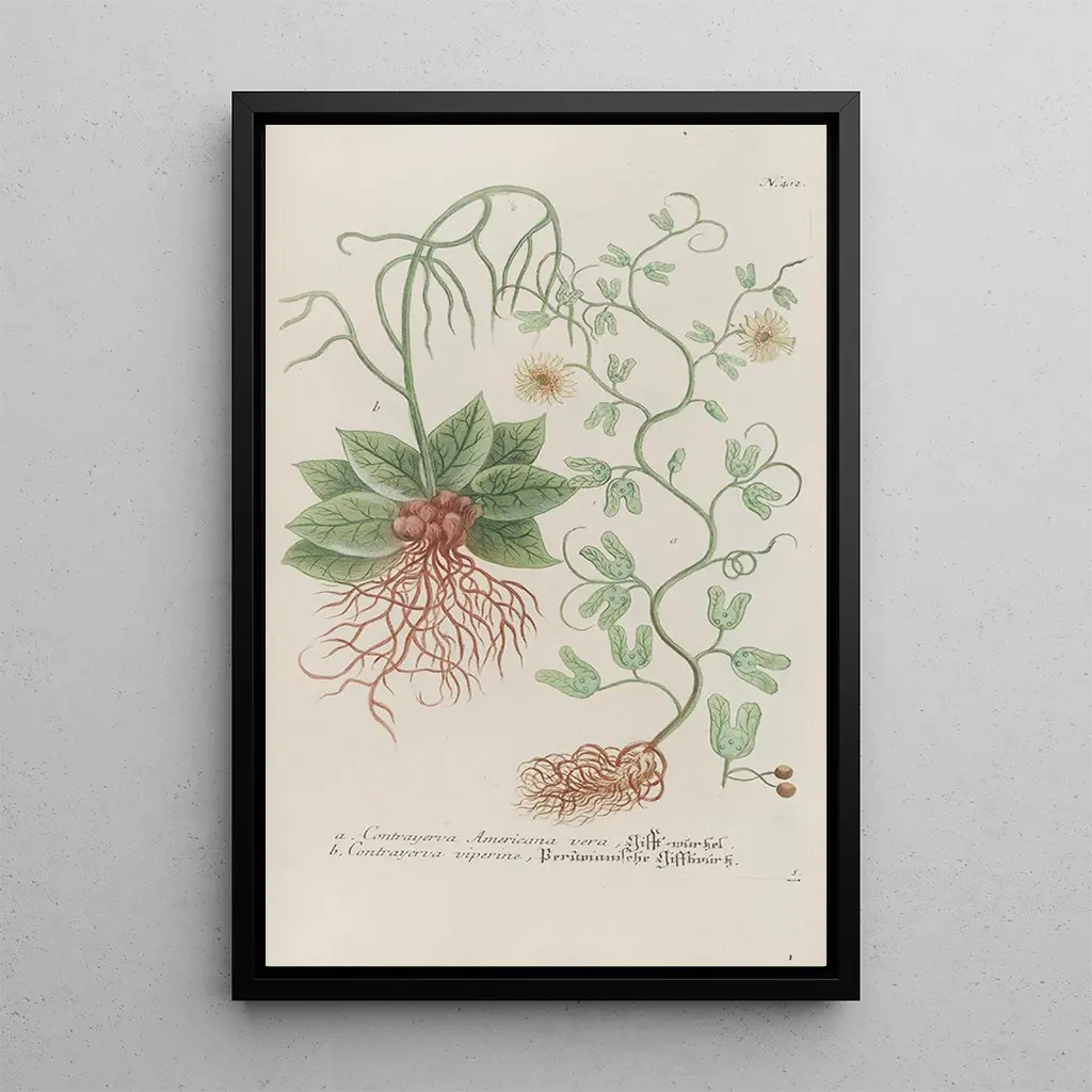 La impresión artística de Phytanthoza iconographia Pl135, realizada por Johann Wilhelm Weinmann, nos transporta al corazón de una rica diversidad botánica. Los tonos vibrantes y los detalles refinados de las plantas presentadas evocan una naturaleza vibrante y llena de vida. Gracias a una técnica de grabado precisa, Weinmann logra capturar la esencia misma de cada especie, creando una atmósfera a la vez científica y artística. Esta obra invita a la contemplación y a la maravilla ante la belleza del mundo natural.