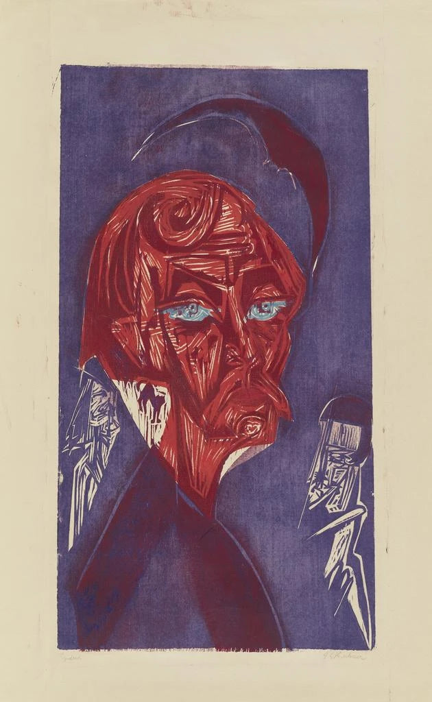 Nacido en 1880, Ernst Ludwig Kirchner es uno de los fundadores del movimiento expresionista en Alemania. Influenciado por el fauvismo y el arte primitivo, desarrolla un estilo único que rompe con las convenciones académicas de su época. Kirchner, miembro del grupo Die Brücke, busca expresar sentimientos profundos y realidades sociales a través de sus obras. Su trabajo, marcado por una fuerte carga emocional, refleja las tensiones y los trastornos de la sociedad alemana a principios del siglo XX. El retrato de Karl Stirner encaja perfectamente en esta línea, testimoniando la importancia del individuo en un mundo en transformación.
