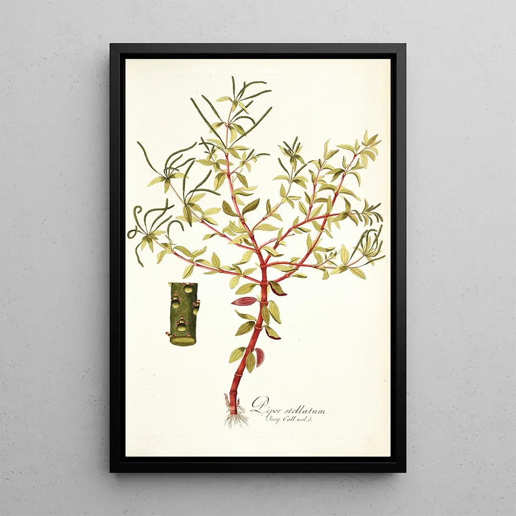 La impresión artística de Piper stellatum es una pieza decorativa ideal para diversos espacios, ya sea en un salón, una oficina o un dormitorio. Su calidad de impresión y fidelidad a los detalles originales la convierten en una opción atractiva para quienes valoran el arte botánico. Al integrar este cuadro en tu decoración, aportas un toque de elegancia y serenidad a tu interior. El atractivo estético de esta obra reside no solo en su belleza visual, sino también en la riqueza de su historia, haciendo de cada mirada una invitación a explorar las maravillas de la naturaleza.