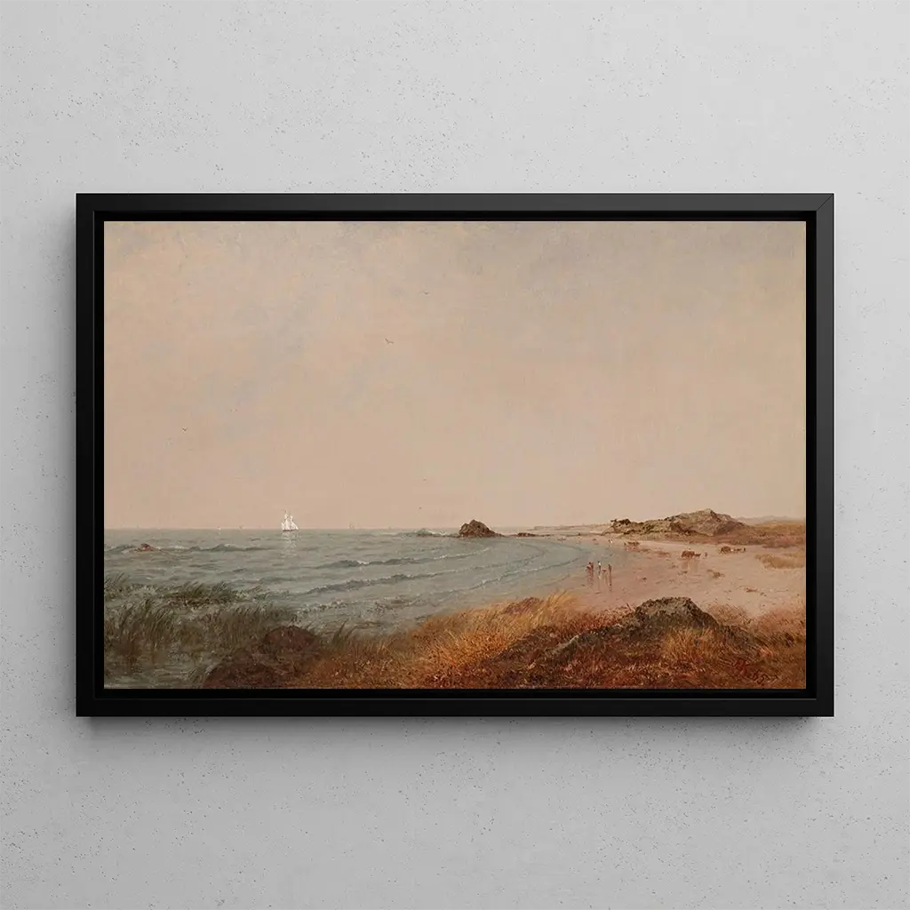 John Frederick Kensett, né en 1816, est reconnu comme l'un des principaux représentants de l'école de Hudson River, un mouvement artistique qui a célébré les paysages américains. Influencé par l'Europe, Kensett a su intégrer des éléments de la peinture romantique tout en mettant en avant la beauté naturelle des États-Unis. Son travail a été essentiel pour établir une tradition de peinture de paysage qui valorise la lumière et l'atmosphère. Kensett a également été un membre actif de la National Academy of Design, contribuant à l'évolution de l'art américain au XIXe siècle.