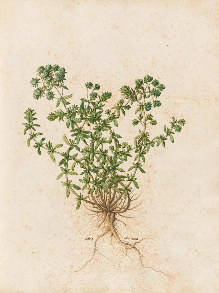 El estilo de Giovanna Garzoni se caracteriza por una finura excepcional, una atención a los detalles que roza el realismo. En "Plantas diversas Pl44", la composición está cuidadosamente orquestada, cada elemento encuentra su lugar en un equilibrio armonioso. Los colores, de una riqueza asombrosa, juegan un papel esencial en la atmósfera de la obra. Los matices vibrantes de los verdes, los amarillos y los rosas se mezclan con una ligereza que recuerda la frescura de un jardín en primavera. La luz, omnipresente, realza las texturas delicadas de las hojas y las flores, creando un juego de sombras y luces que da vida a la tela. Garzoni no se limita a reproducir la naturaleza, la la sublime, transformando cada planta en un tema digno de admiración.