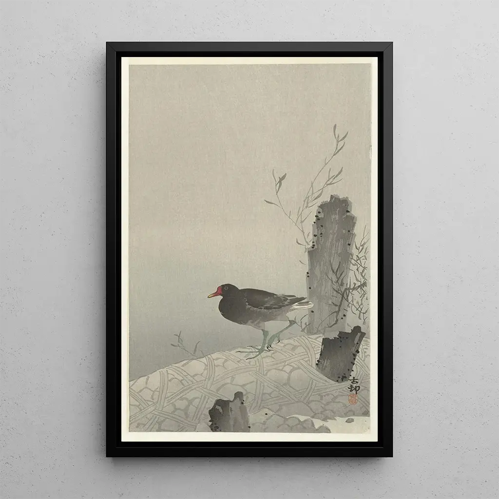 La impresión artística de la obra "Poule d'eau" nos sumerge en un universo natural donde la fauna y la flora cohabitan armoniosamente. Esta representación delicada del ave, a menudo asociada a ambientes acuáticos, se realza con colores matizados que capturan la luz de manera sutil. La técnica de impresión utilizada por Ohara Koson permite reproducir cada pluma con una precisión notable, creando a la vez una atmósfera tranquila y contemplativa. La obra evoca un momento suspendido en el tiempo, donde el observador puede apreciar la belleza simple y auténtica de la naturaleza.