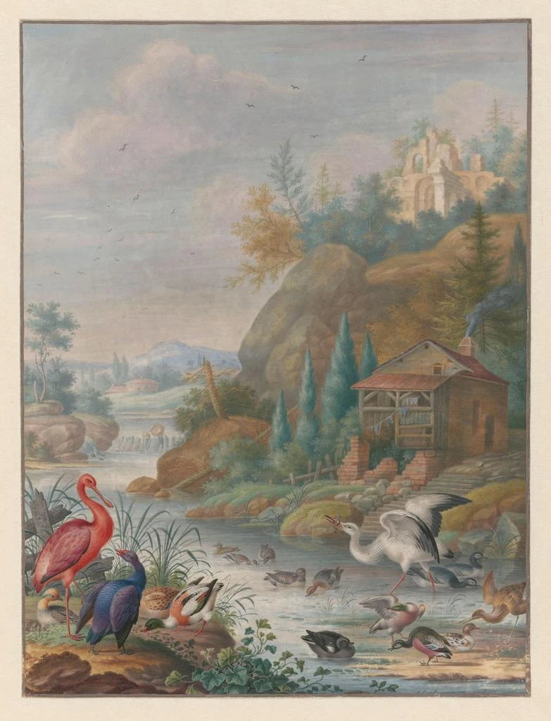 Aves de corral junto a un arroyo de montaña - Herman Henstenburgh