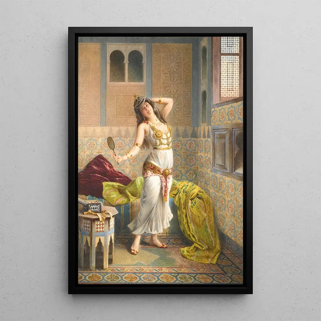Francesco Ballesio, activo en el siglo XIX, suele asociarse al movimiento romántico, que valora la expresión de las emociones y la belleza de la naturaleza. Influenciado por los grandes maestros de su tiempo, supo desarrollar un estilo único, destacando temas de la vida cotidiana y escenas de danza. Preparación para la danza ilustra perfectamente este enfoque, ofreciendo una visión de la cultura y los pasatiempos de su época. Ballesio supo capturar el espíritu de su tiempo, haciendo de sus obras testimonios valiosos de la sociedad y las artes de su época.
