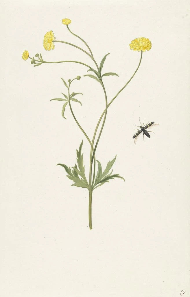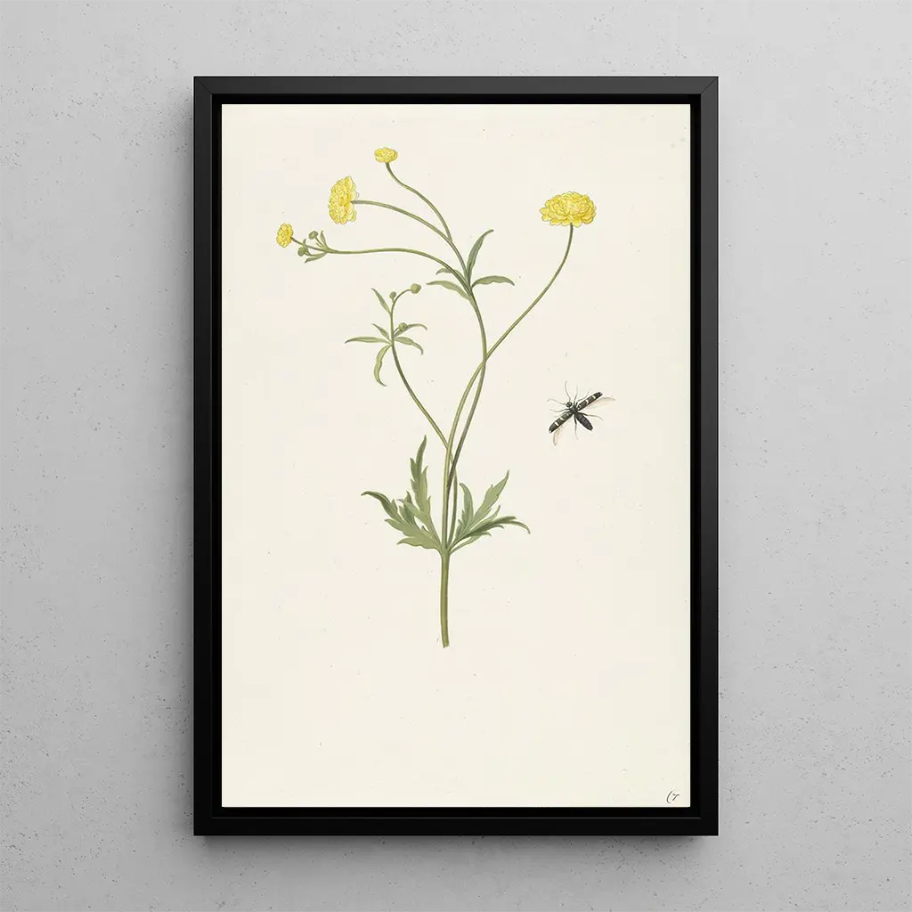 Cuadro Renoncule amarillo doble y insecto - Pieter Withoos | Impresión artística