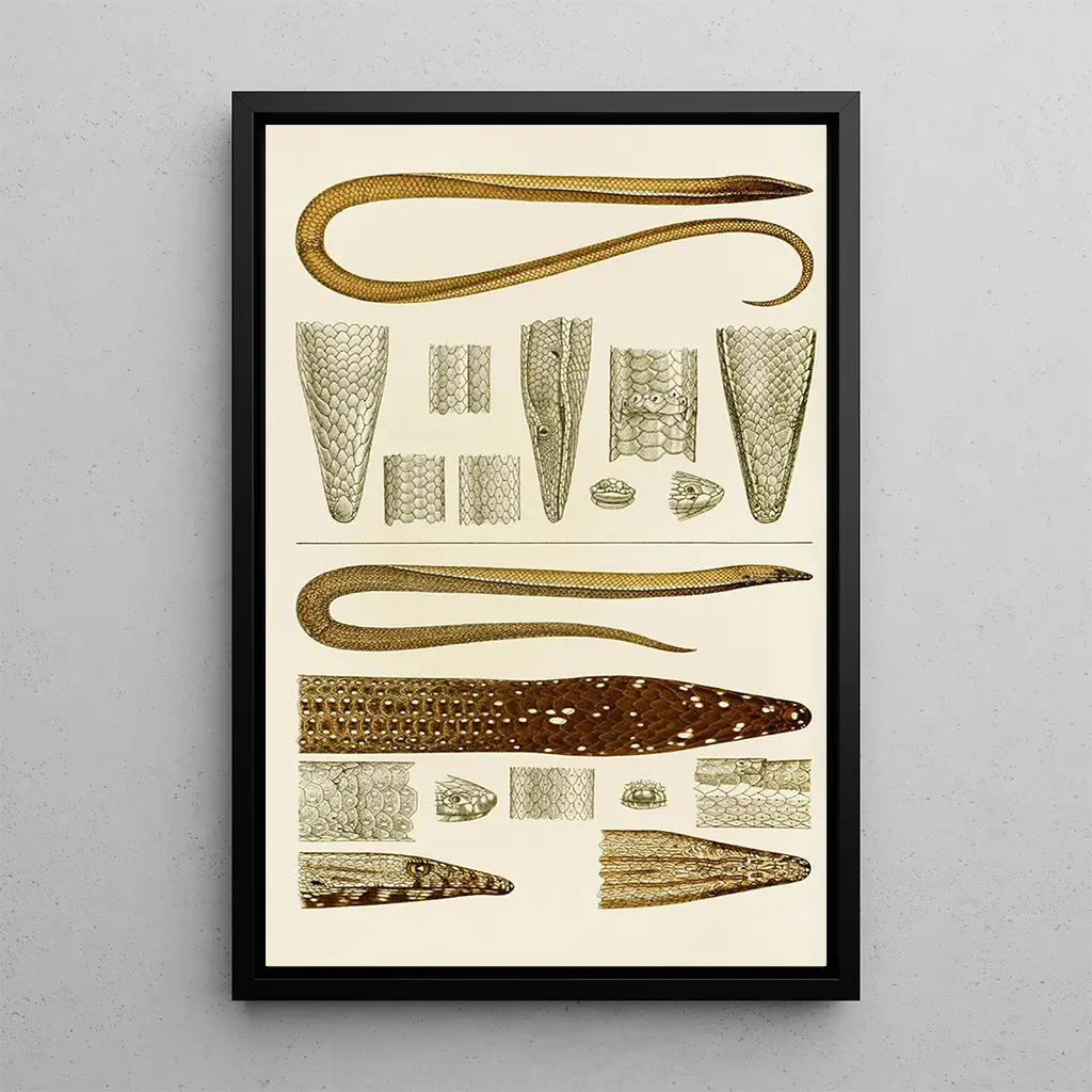 Optar por la impresión artística de "Reptiles V" en su interior, es elegir una obra que aporta un toque de originalidad y elegancia. Ya sea en un salón, una oficina o un dormitorio, este cuadro sabrá captar la atención de sus invitados y suscitar conversaciones apasionantes. La calidad de la impresión garantiza una fidelidad a los colores y detalles de la obra original, al tiempo que ofrece un atractivo estético indudable. Al integrar esta tela en su decoración, añade una dimensión artística que celebra la belleza del reino animal, enriqueciendo al mismo tiempo el ambiente de su espacio vital.
