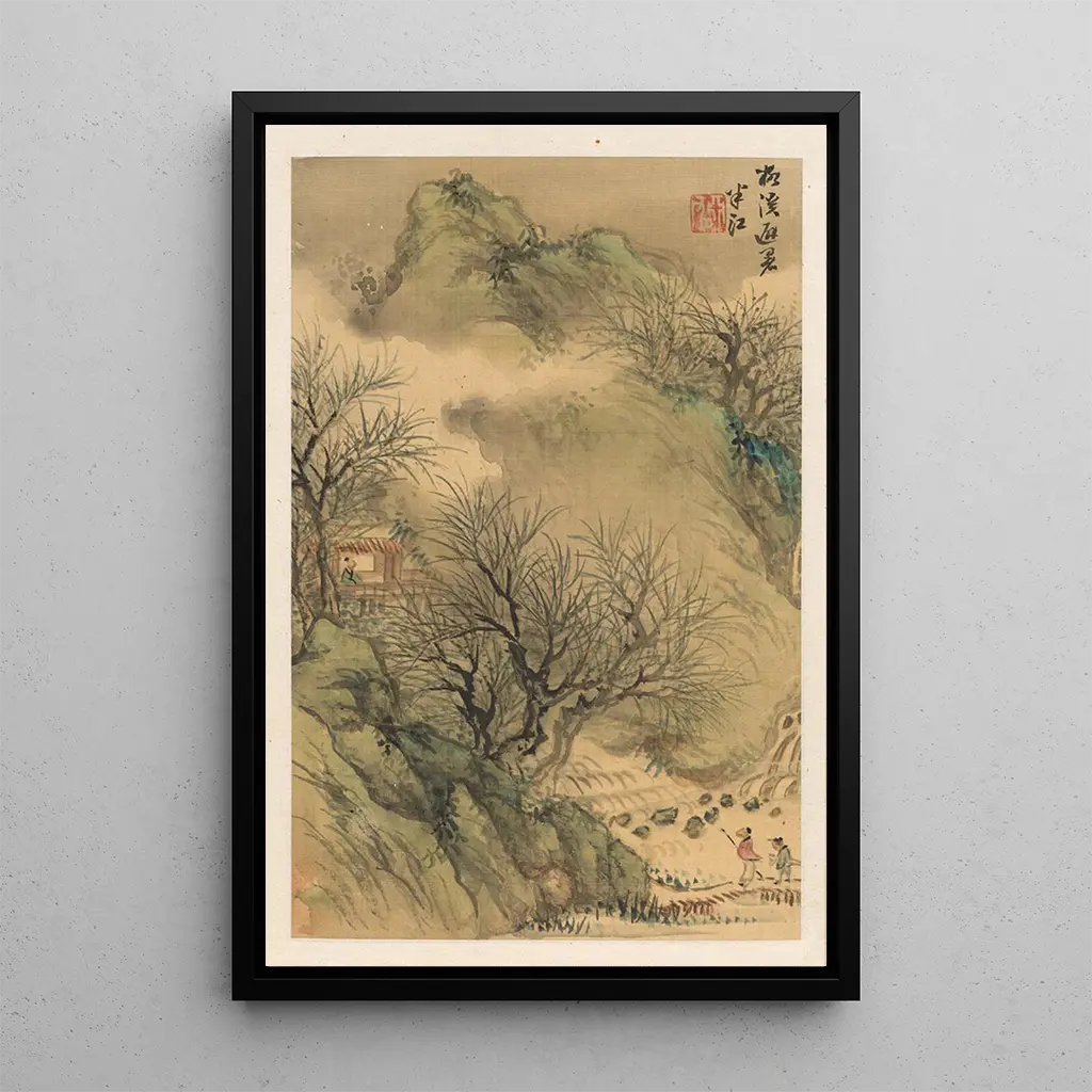 La impresión artística de Retraite d'été d'Okada Hankō evoca una atmósfera serena y contemplativa. Este cuadro, bañado en matices suaves y tranquilizadores, nos sumerge en un paisaje idílico donde la naturaleza florece. Los colores pastel, combinando verdes delicados y toques de azul, crean una armonía visual que invita a la ensoñación. La técnica del artista, que combina precisión y fluidez, permite sentir la ligereza del aire y el susurro de las hojas. Cada detalle, desde los árboles majestuosos hasta los reflejos en el agua, contribuye a un ambiente de tranquilidad, como si el tiempo se hubiera detenido.