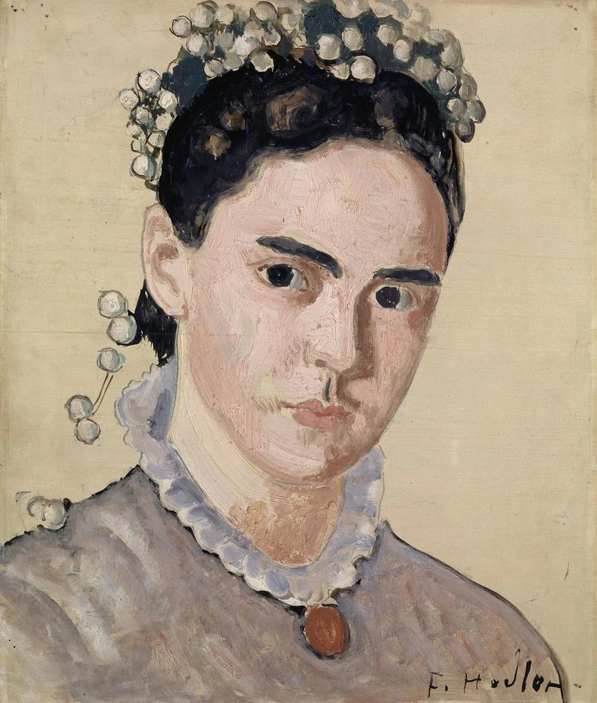 El estilo de Ferdinand Hodler se distingue por su enfoque único del color y la luz, que confiere a sus retratos una profundidad emocional rara. En esta obra, las delicadas tonalidades de la piel de Marie Elise contrastan con fondos más oscuros, creando un efecto de iluminación que atrae inmediatamente la mirada. Cada pincelada parece portadora de una intención, una delicadeza que revela la sensibilidad del artista hacia su modelo. El rostro de Marie Elise, con sus rasgos suaves y su mirada pensativa, es a la vez una celebración de la belleza femenina y una exploración de los sentimientos. Esta dualidad hace del retrato una obra maestra, donde la técnica pictórica se mezcla con una narración visual, invitando al espectador a interpretar sus propias emociones y reflexiones frente a la imagen.
