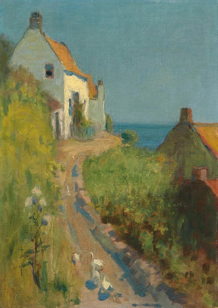 Mark Senior, activo a principios del siglo XX, es reconocido por sus paisajes marinos y escenas de la vida cotidiana. Influenciado por el movimiento impresionista, supo capturar la luz y la atmósfera de sus temas con gran sensibilidad. Su trabajo refleja un período en el que el arte británico comienza a liberarse de las convenciones académicas, adoptando un enfoque más libre y expresivo. "Un rincón de Runswick" ilustra perfectamente esta evolución, resaltando la belleza de los paisajes británicos y demostrando la importancia de la naturaleza en el arte.