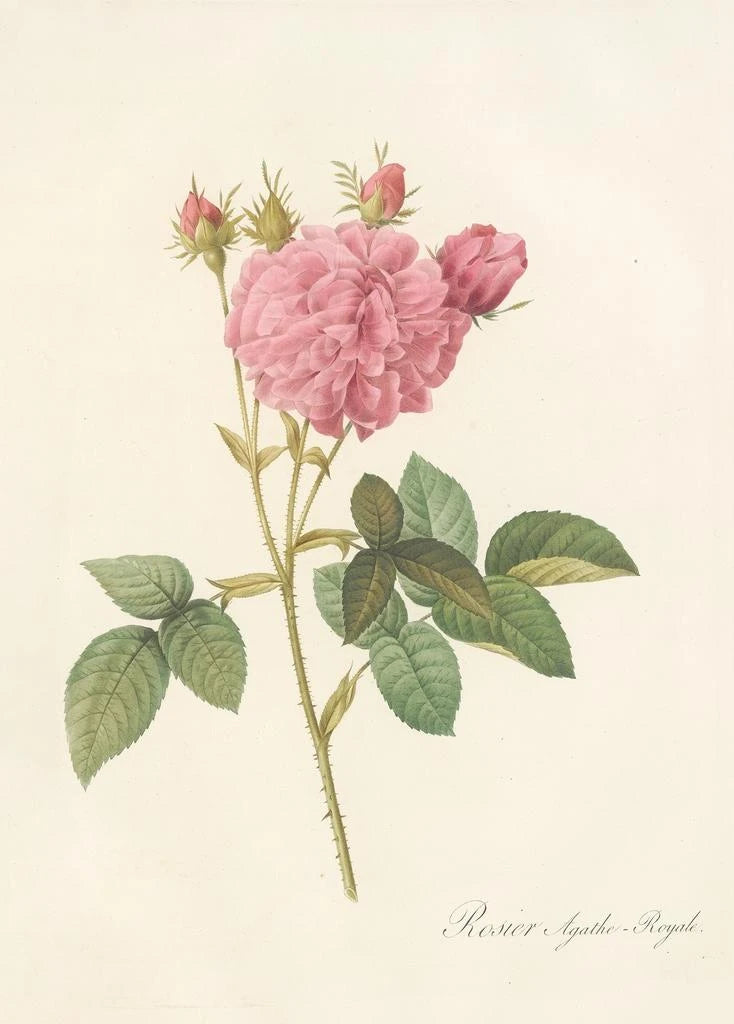 Cuadro Rosa Gallica Agatha Var Regalis - Pierre Joseph Redouté | Impresión artística