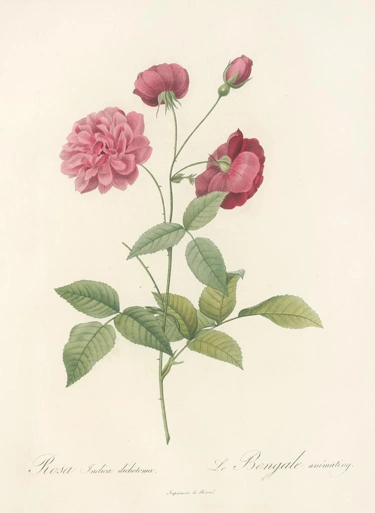Cuadro Rosa Indica Dichotoma - Pierre Joseph Redouté | Impresión artística