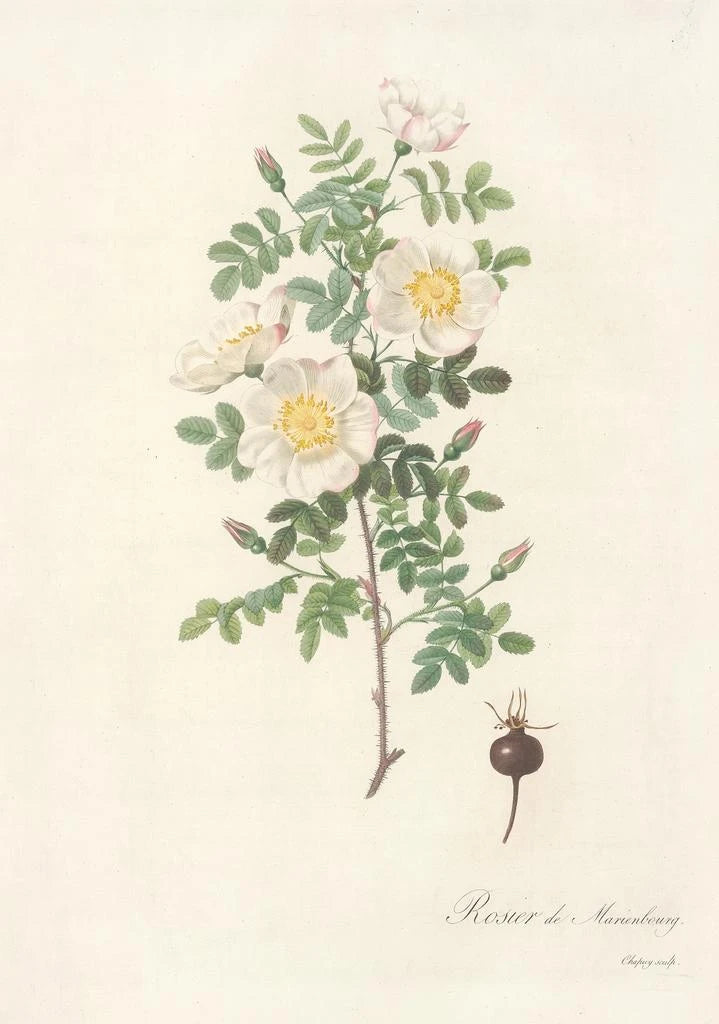 Cuadro Rosa Pimpinellifolia Mariaeburgensis - Pierre Joseph Redouté | Impresión artística