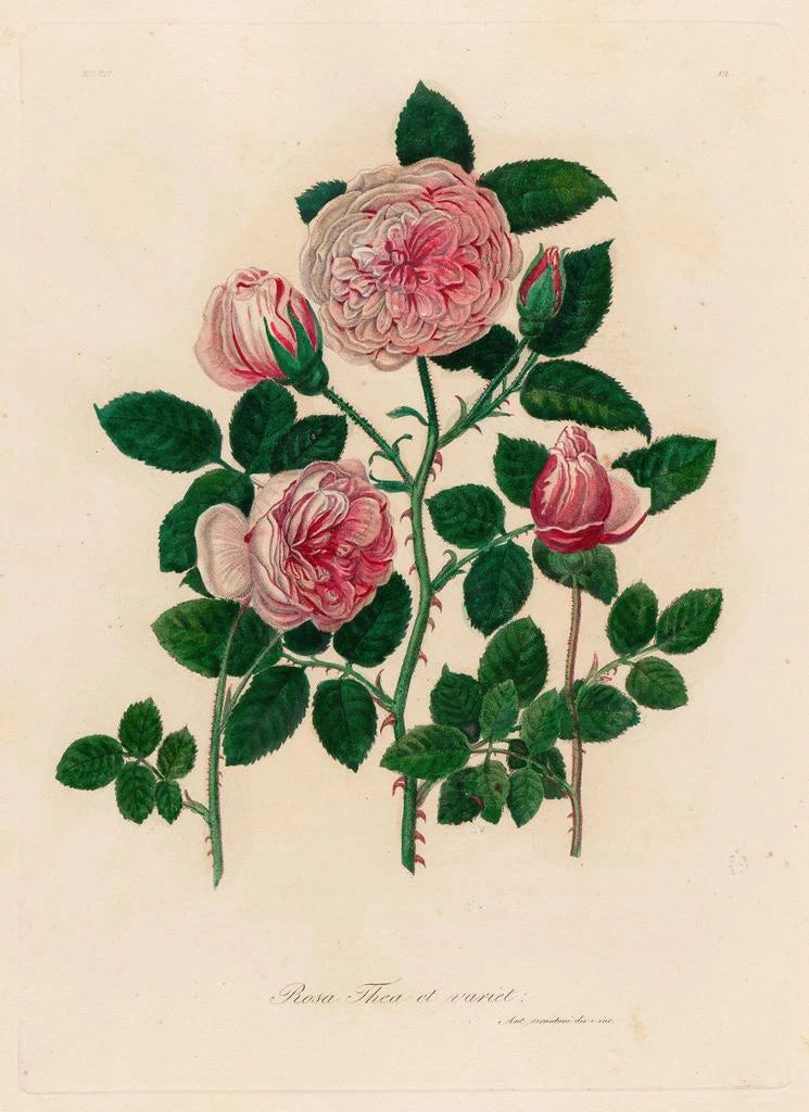 Cuadro Rosa thea y variedades - Gaetano Savi | Impresión artística