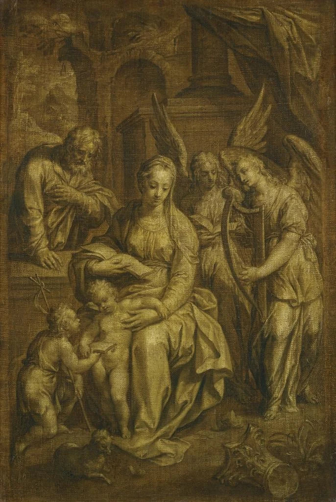 Cuadro Santa Familia con ángeles - Hendrik de Clerck | Impresión artística