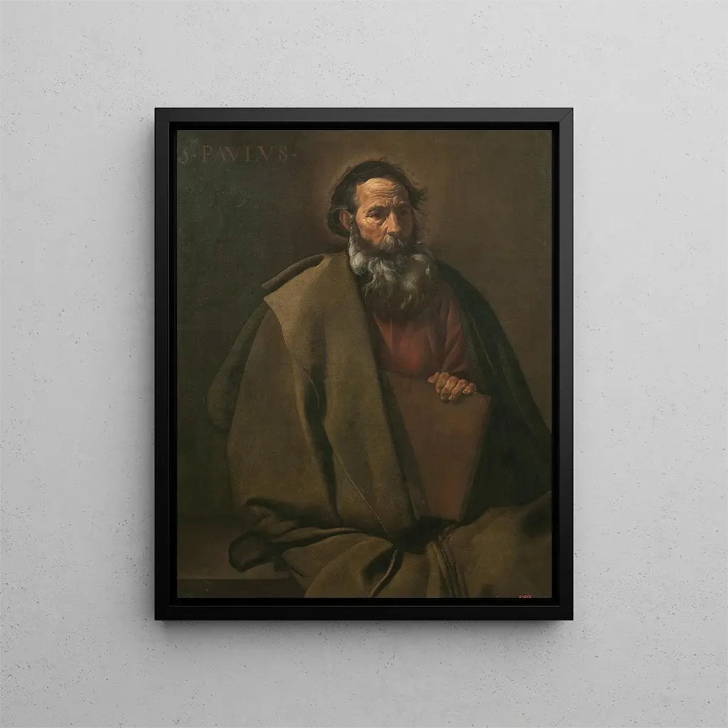 El estilo de Velázquez es notable por su capacidad para capturar la esencia misma de sus sujetos. En "San Pablo", la técnica del claroscuro se destaca, acentuando el contraste entre la luz divina y la oscuridad que rodea al santo. Los detalles minuciosos, como los pliegues de la túnica y la expresión del rostro, reflejan una observación profunda y un respeto por la humanidad de sus personajes. La composición, a la vez simple y poderosa, concentra la atención en San Pablo, mientras deja entrever una dimensión espiritual. Esta obra no se limita a una representación figurativa; también evoca temas universales como la fe, la redención y la búsqueda de la verdad, haciendo de "San Pablo" una pieza atemporal que resuena con las preocupaciones humanas.
