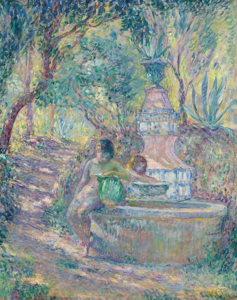 Saint-Tropez, dos jóvenes en la fuente - Henri Lebasque