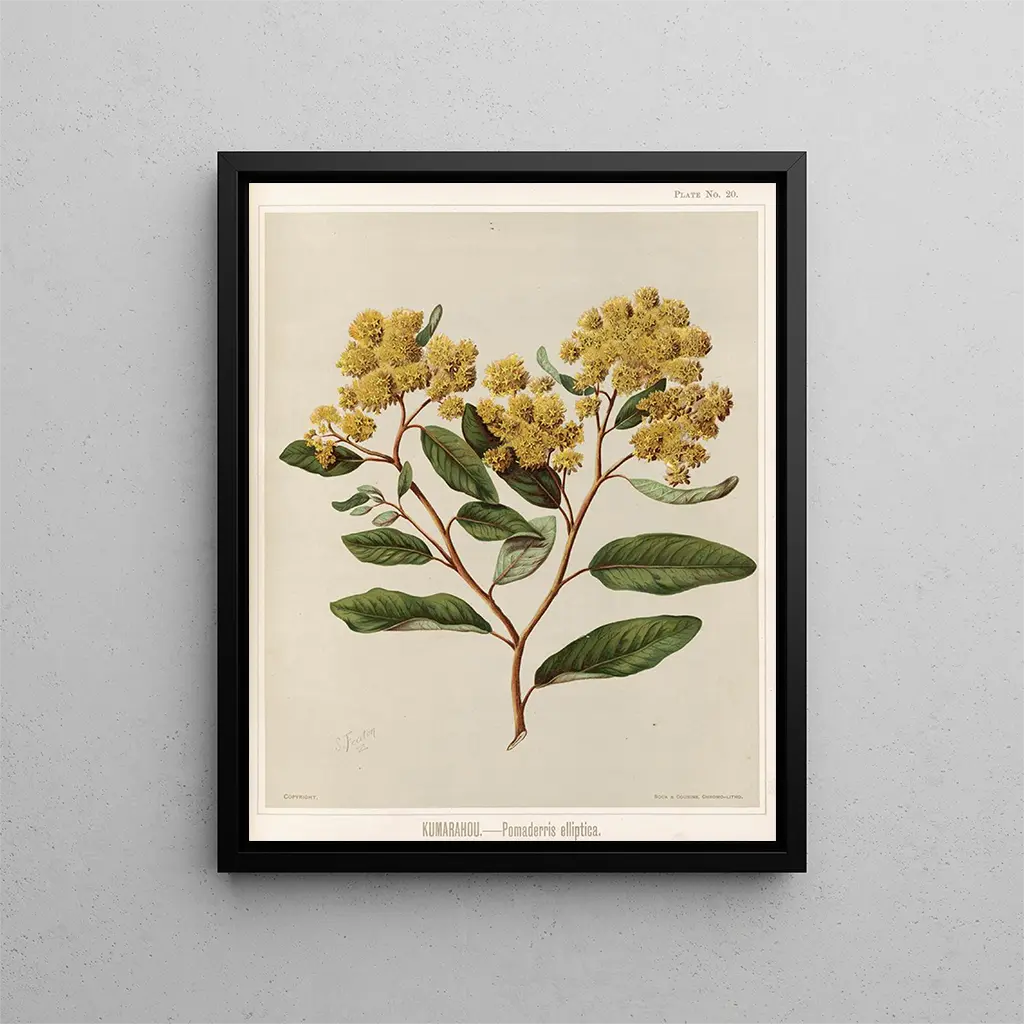 En esta obra, Sarah Featon ilustra el Kumarahou, o Pomaderris elliptica, una planta endémica de Nueva Zelanda. Con un enfoque artístico delicado, logra capturar los detalles de esta planta, desde sus flores hasta su follaje. La precisión de Featon la convierte en una artista botánica respetada, y sus obras se han convertido en piezas buscadas por su capacidad para enriquecer nuestros espacios de vida. Las ilustraciones de Featon aportan un toque de naturaleza y una estética refinada, integrándose armoniosamente en diferentes estilos de decoración interior. Son ideales para quienes buscan crear un ambiente relajante e inspirador. Descubra esta obra en Artem Legrand y déjese seducir por la belleza de la flora neozelandesa.