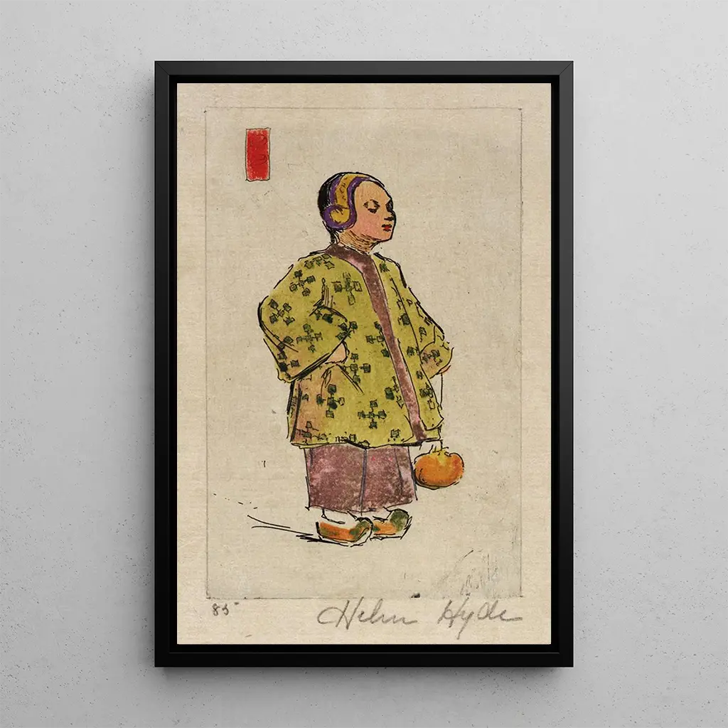 Helen Hyde, nacida en 1868, es una figura destacada del arte estadounidense, conocida por sus obras inspiradas en la cultura japonesa. Después de haber vivido varios años en Japón, supo integrar elementos de esta estética en su trabajo, creando así un estilo único. Mademoiselle Fleur de prunier ilustra perfectamente esta fusión entre Oriente y Occidente, donde la artista explora la feminidad a través de escenas impregnadas de suavidad y serenidad. Su legado artístico perdura, testimonio de la importancia de su obra en el panorama artístico de su época.
