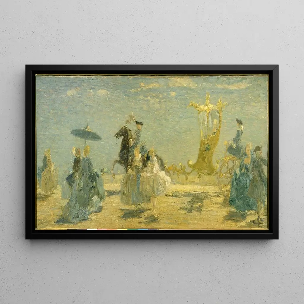 Symphonie en bleu : una armonía de matices marinos La "Symphonie en bleu" de Emma Ciardi es una obra cautivadora que evoca la tranquilidad y la profundidad de los océanos. Las diferentes tonalidades de azul, que van desde el turquesa hasta el azul profundo, crean una atmósfera relajante, casi meditativa. Ciardi, con su dominio de la luz y la sombra, logra dar vida a esta obra, donde las olas parecen moverse bajo la mirada del espectador. Cada pincelada es una nota en esta sinfonía visual, invitando a una contemplación serena y a una escapada hacia horizontes lejanos. Emma Ciardi: una pionera de la pintura marina Emma Ciardi, artista italiana activa a finales del siglo XIX y principios del XX, es reconocida por sus paisajes marinos y sus representaciones del mar. Influenciada por el movimiento impresionista, supo capturar la belleza de las costas y las olas con una sensibilidad única. Su carrera, aunque menos conocida que la de sus contemporáneos masculinos, marcó su época por su capacidad para traducir la emoción y la luz. "Symphonie en bleu" es testimonio de su talento y de su compromiso con la representación de la naturaleza, convirtiéndola en una figura importante en la historia del arte. Una adquisición decorativa con múltiples ventajas La impresión artística de "Symphonie en bleu" es una elección perfecta para aportar un toque de serenidad a su decoración interior. Ya sea en una oficina, un salón o un dormitorio, esta obra ofrece una calidad de impresión excepcional que respeta las tonalidades originales de la obra. Su atractivo estético y su capacidad para evocar emociones la convierten en un elemento decorativo ideal para crear un ambiente relajante. Al integrar esta obra en su espacio, no solo añade una pieza de arte, sino también una invitación a la ensoñación y a la escapada hacia costas tranquilas.