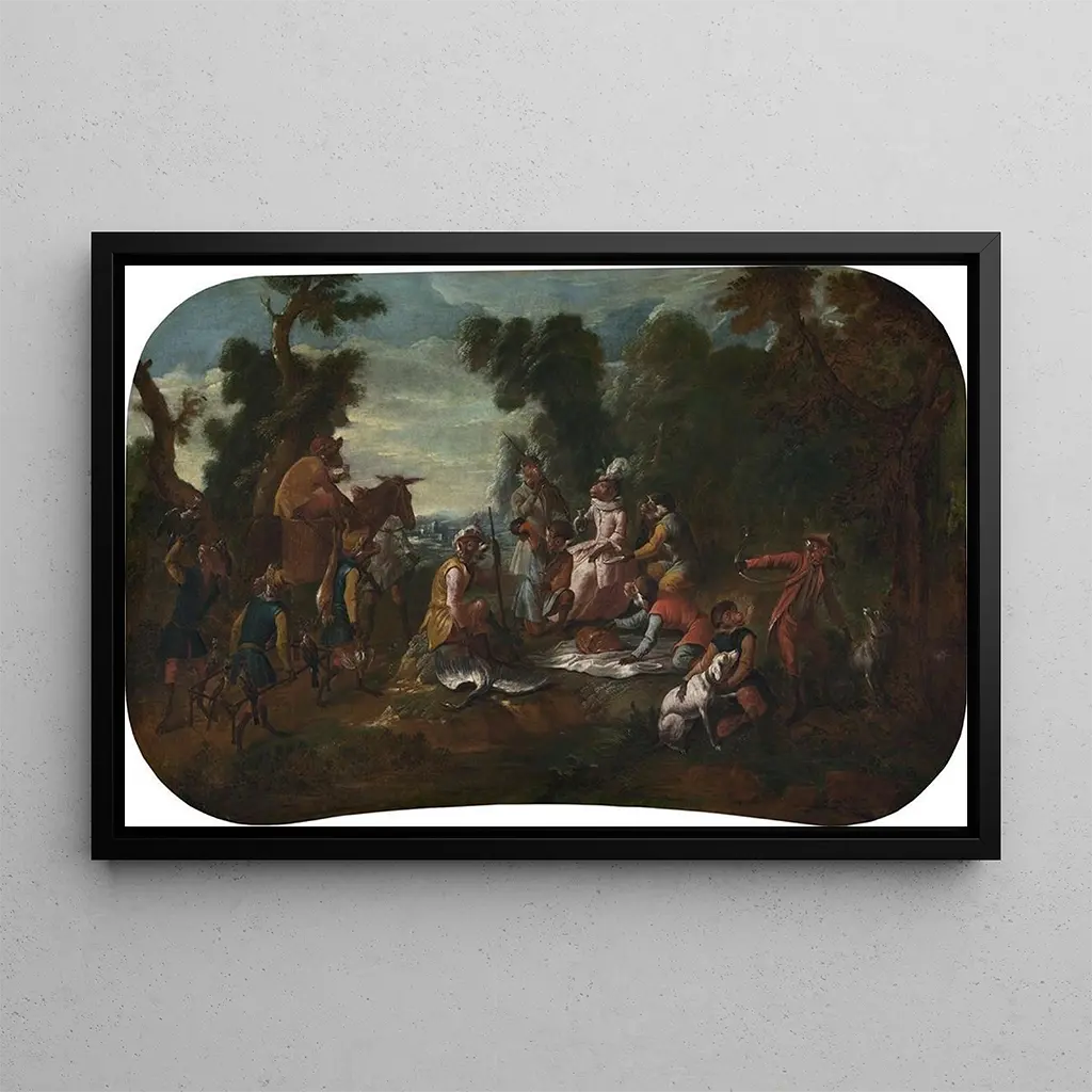 En esta obra cautivadora, Singerie La Merienda, Christophe Huet nos sumerge en una atmósfera ligera y alegre. La composición presenta monos antropomorfos, vestidos con elegancia, disfrutando de una merienda en plena naturaleza. Los colores pastel, suaves y armoniosos, crean un ambiente sereno, mientras que los detalles minuciosos de los disfraces y accesorios añaden un toque de sofisticación. La técnica del artista, combinando delicadeza y viveza, hace que esta obra sea vibrante y atractiva, invitando al espectador a sumergirse en este momento de convivialidad.