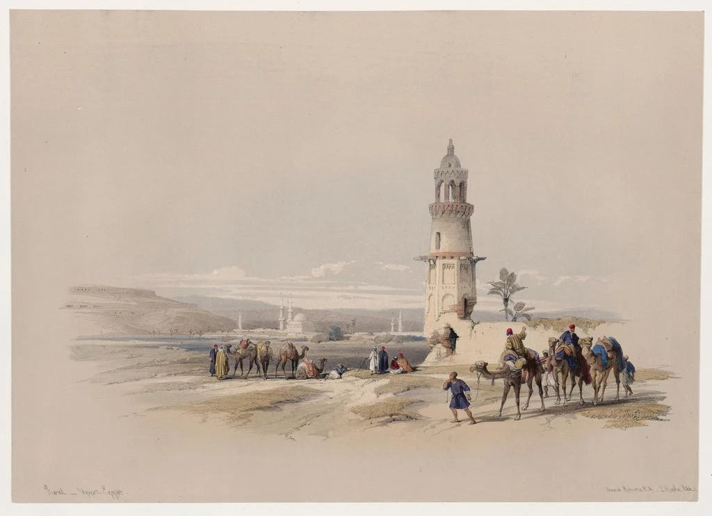 "Siout Asyut Haute-Égypte" es una obra emblemática de David Roberts que nos transporta al corazón de los paisajes egipcios. Con una paleta de colores cálidos, que van desde los ocres hasta los azules profundos, Roberts captura la majestuosidad de los monumentos y los paisajes desérticos. La técnica de la acuarela, utilizada con delicadeza, permite reflejar la luz brillante del sol egipcio, creando una atmósfera a la vez mística y realista. Cada detalle, desde las siluetas de las pirámides hasta los matices de las dunas, evoca un mundo antiguo, rico en historia y cultura, invitando al espectador a explorar las maravillas de Egipto.