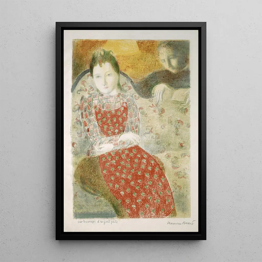 En esta obra, Maurice Denis nos sumerge en un universo delicado y poético. La impresión artística "En el sofá plateado pálido" evoca una atmósfera de tranquilidad y dulzura. Los colores pastel, dominados por matices plateados y toques de rosa, crean un espacio íntimo donde la luz parece acariciar las formas. La composición, centrada en una figura femenina sentada, invita a la contemplación y a la ensoñación. Los motivos florales y las texturas delicadas refuerzan esta impresión de serenidad, haciendo de esta obra un verdadero refugio visual de paz.