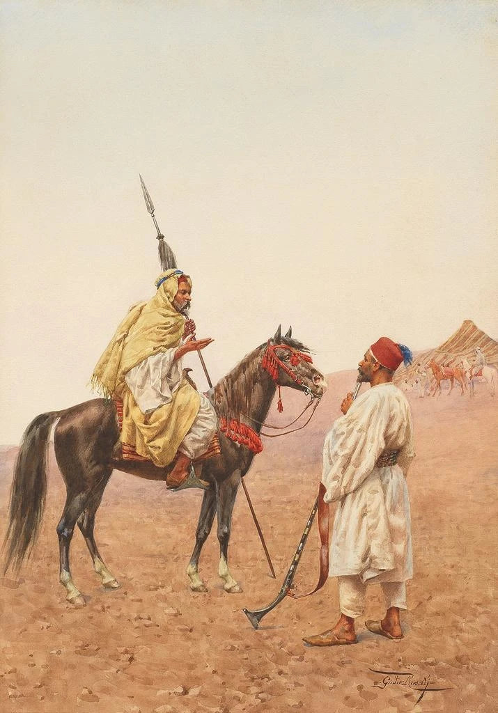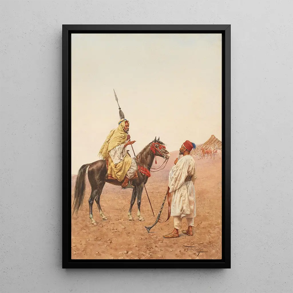 Demander le chemin : una escena de vida vibrante En esta obra cautivadora, "Demander le chemin", Giulio Rosati nos sumerge en el corazón de una escena animada donde la interacción humana es protagonista. Los colores cálidos y terrosos, típicos de Oriente, se combinan armoniosamente para crear una atmósfera viva y acogedora. La técnica de Rosati, que combina realismo y toques impresionistas, da vida a cada personaje, haciendo que la composición sea dinámica y atractiva. Los detalles minuciosos de los trajes y las expresiones faciales reflejan una observación atenta de la vida cotidiana, invitando al espectador a involucrarse en esta búsqueda de dirección. Giulio Rosati: un testigo del orientalismo Giulio Rosati, pintor italiano del siglo XIX, es reconocido por sus obras que capturan la esencia del orientalismo. Influenciado por sus viajes en África del Norte y Oriente Medio, supo plasmar la belleza y el exotismo de estas regiones a través de su arte. Rosati evolucionó en un período en el que el orientalismo alcanzaba su apogeo, y sus cuadros reflejan una fascinación por las culturas orientales, a menudo idealizadas por los artistas europeos. Su trabajo, rico en detalles y colores, contribuyó a moldear la percepción occidental de estas tierras lejanas, convirtiéndolo en un actor clave de este movimiento artístico. Una adquisición decorativa con múltiples ventajas La impresión artística de "Demander le chemin" es una pieza decorativa que embellecerá cualquier espacio, ya sea un salón, una oficina o un dormitorio. Su calidad de impresión y fidelidad a la obra original garantizan un resultado estético excepcional, permitiendo apreciar cada matiz y detalle. Al integrar este cuadro en tu decoración, aportas un toque de exotismo y cultura a tu interior, además de suscitar conversaciones sobre arte e historia. Este cuadro es mucho más que una simple decoración; es una invitación a explorar y soñar.