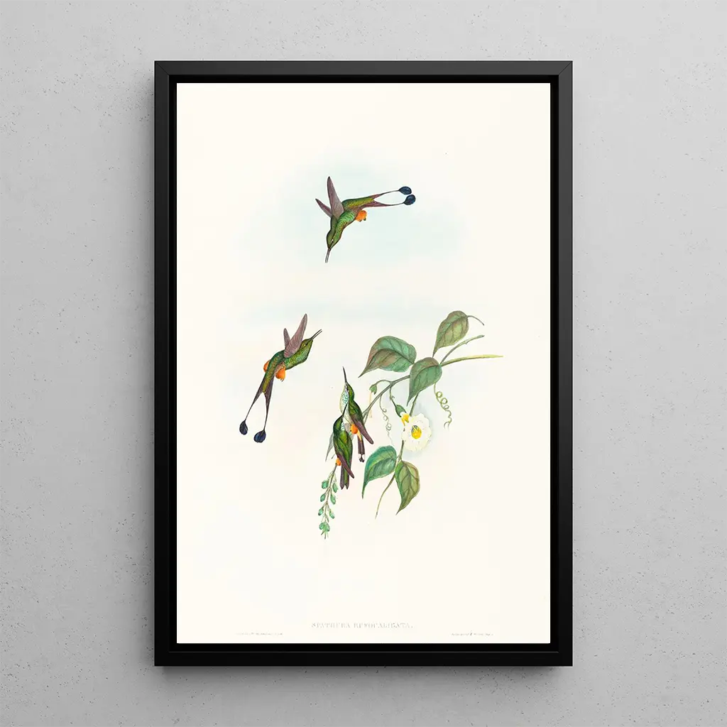 John Gould, activo en el siglo XIX, es una figura emblemática de la ornitología y del arte naturalista. Su carrera, marcada por viajes alrededor del mundo, le permitió descubrir y representar especies de aves a menudo desconocidas. Influenciado por las corrientes artísticas de su época, Gould supo combinar precisión científica y sensibilidad artística, haciendo de sus obras referencias imprescindibles. Sus ilustraciones, como la de Spathura à pattes rousses, reflejan su compromiso de rendir homenaje a la biodiversidad mientras educa al público sobre la belleza del reino animal.