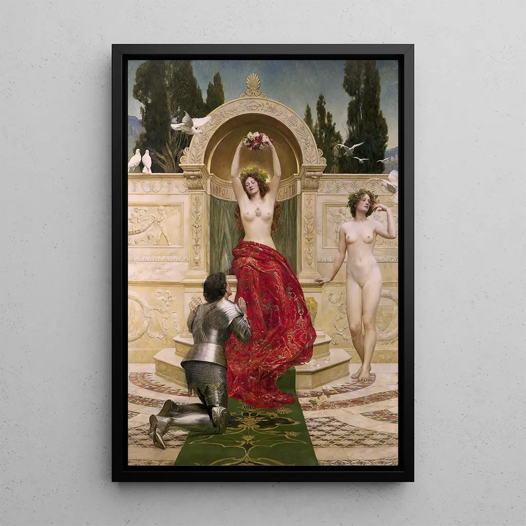 En esta obra cautivadora, John Collier nos sumerge en el corazón de una leyenda medieval donde Tannhäuser, un trovador, se encuentra en el reino encantado de Venus. La composición es rica en detalles, con colores vibrantes que evocan la pasión y la belleza. Las tonalidades de rojo y dorado predominan, creando una atmósfera a la vez mística y sensual. La técnica de Collier, que combina realismo y simbolismo, permite sentir la intensidad de las emociones de los personajes, mientras que el fondo exuberante refuerza el carácter mágico de esta escena.