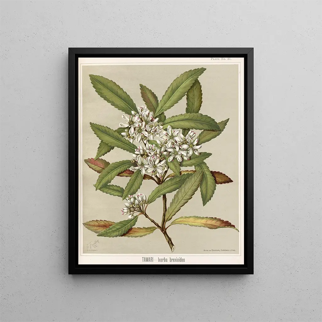 La impresión artística de la obra 'Tawari Ixerba brexioides' de Sarah Featon destaca un árbol neozelandés, conocido por su belleza y rareza. Featon, como artista botánico, logra capturar la majestuosidad de este árbol con una atención especial a los detalles y a la estética. Esta ilustración, que combina precisión científica y sensibilidad artística, evoca los vínculos entre la naturaleza y el arte, al mismo tiempo que celebra la riqueza de la flora local. En un interior moderno, esta obra puede aportar un toque de serenidad y conexión con el entorno natural. La impresión artística de esta obra está disponible en Artem Legrand.