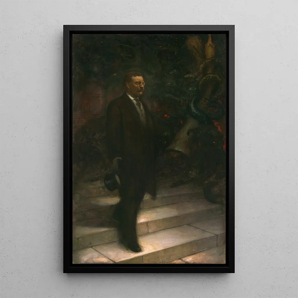 En esta obra impactante, Sigismund de Ivanowski captura la esencia misma de Theodore Roosevelt, el 26º presidente de los Estados Unidos. La pintura transmite una fuerza y una determinación palpables, ilustrando el carácter dinámico de Roosevelt. Los colores ricos y los detalles minuciosos de su traje y expresión transmiten una impresión de poder y liderazgo. La técnica de retrato clásico utilizada por Ivanowski confiere a esta impresión artística una profundidad histórica, rindiendo homenaje a un hombre que marcó su época con su compromiso y visión.
