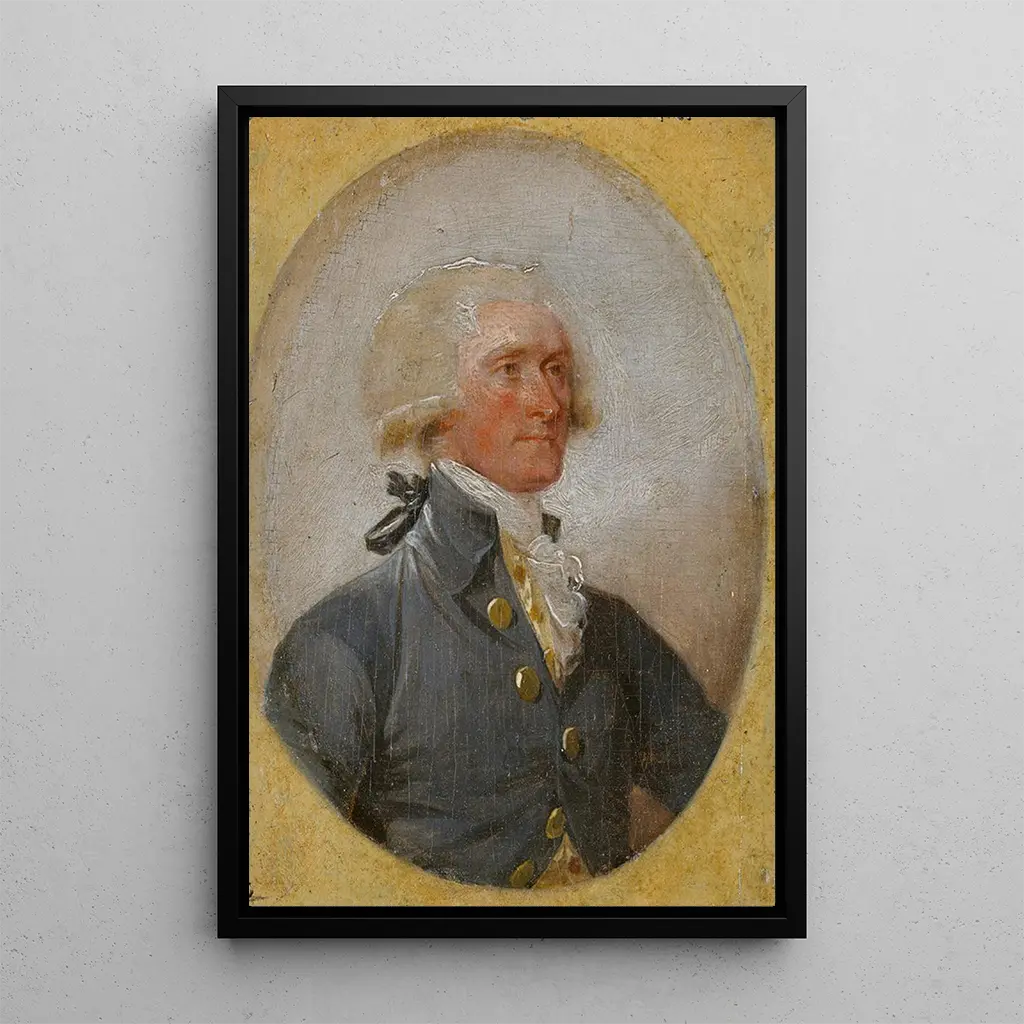 John Trumbull, nacido en 1756, es frecuentemente reconocido por su papel en la representación de las figuras clave de la historia estadounidense. Influenciado por el neoclasicismo, supo fusionar el arte y la política, creando obras que celebran los ideales republicanos. Trumbull fue un testigo directo de los eventos destacados de su época, y su trabajo refleja los valores de la Revolución estadounidense. "Thomas Jefferson" es una de sus obras más significativas, ilustrando no solo al personaje histórico, sino también el espíritu de una nación en plena construcción, marcada por ideales de libertad y democracia.