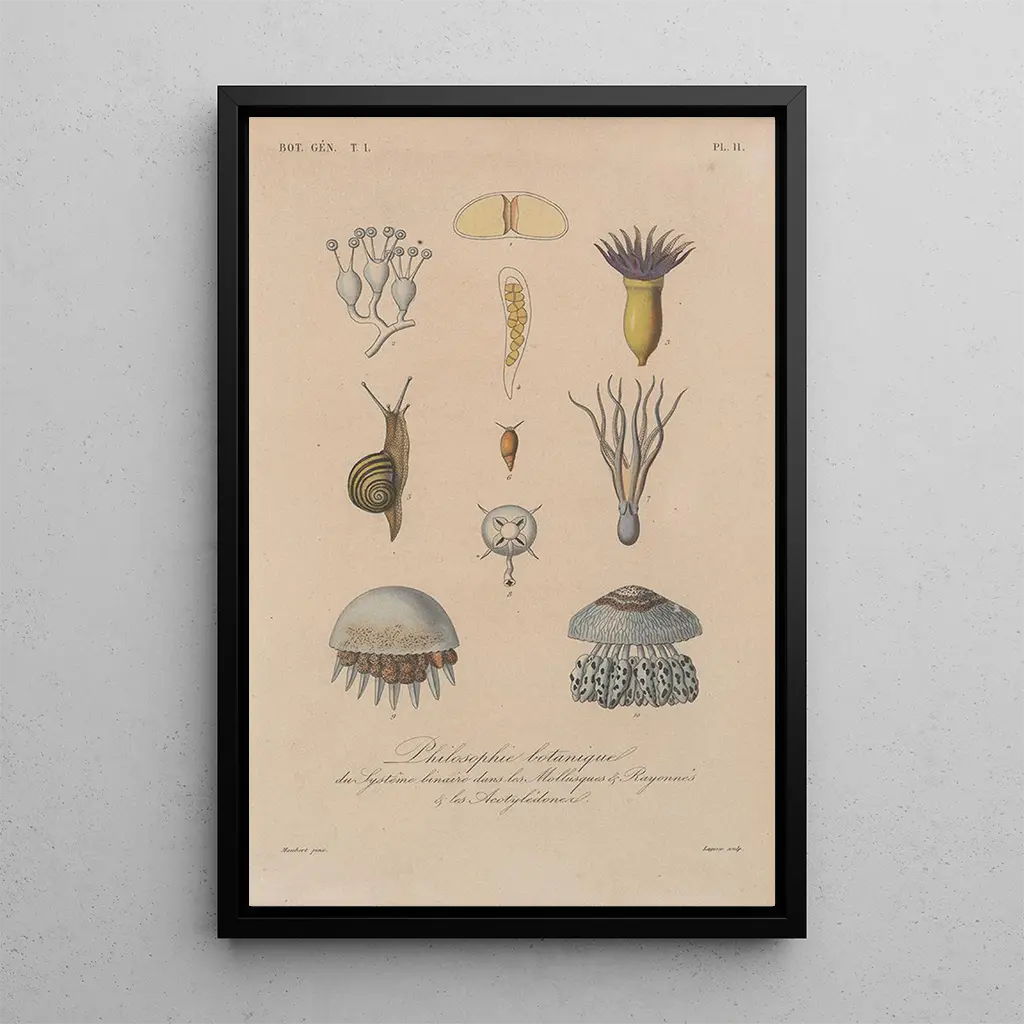 El cuadro Traité de botanique générale Pl011 de François Hérincq se presenta como una verdadera sinfonía visual, donde cada planta se realza con colores vibrantes y formas delicadas. El artista logra capturar la diversidad y la complejidad del mundo vegetal con una precisión notable. Los tonos ricos y variados, que van desde verdes profundos hasta rosas sutiles, crean una atmósfera a la vez viva y tranquilizadora. La técnica de Hérincq, que combina observación minuciosa y sensibilidad artística, ofrece una experiencia contemplativa única, invitando al espectador a explorar las maravillas de la botánica.